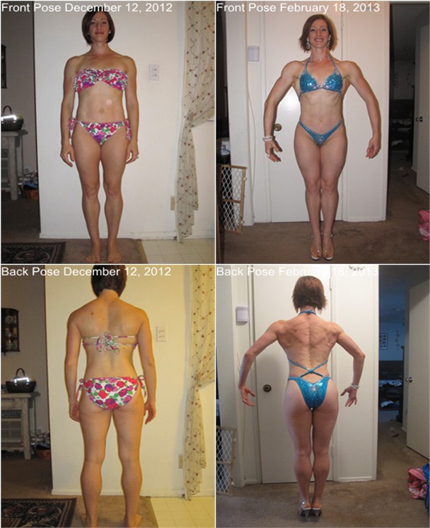 My client Alli began training with me on December 17th, 2012 for an NPC contest which will be held on April 13th, 2013. These images show her one week before she began contest prep and how she looked on February 18th after 8 weeks of dedicated training and prep. She will compete in both Open and Masters Figure. This woman is tremendous and I am so very proud of her! She has stuck with her meal plan and training despite having two small children and a very full life. Talk about inspiring!