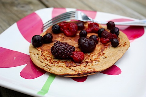 Since the question of what to eat comes up so often, I thought I would share a favorite secret breakfast recipe. This “do it yourself” pancake recipe gives you amazing lean protein intake. Once you try these pancakes, oatmeal is made a lot more interesting. Yum!