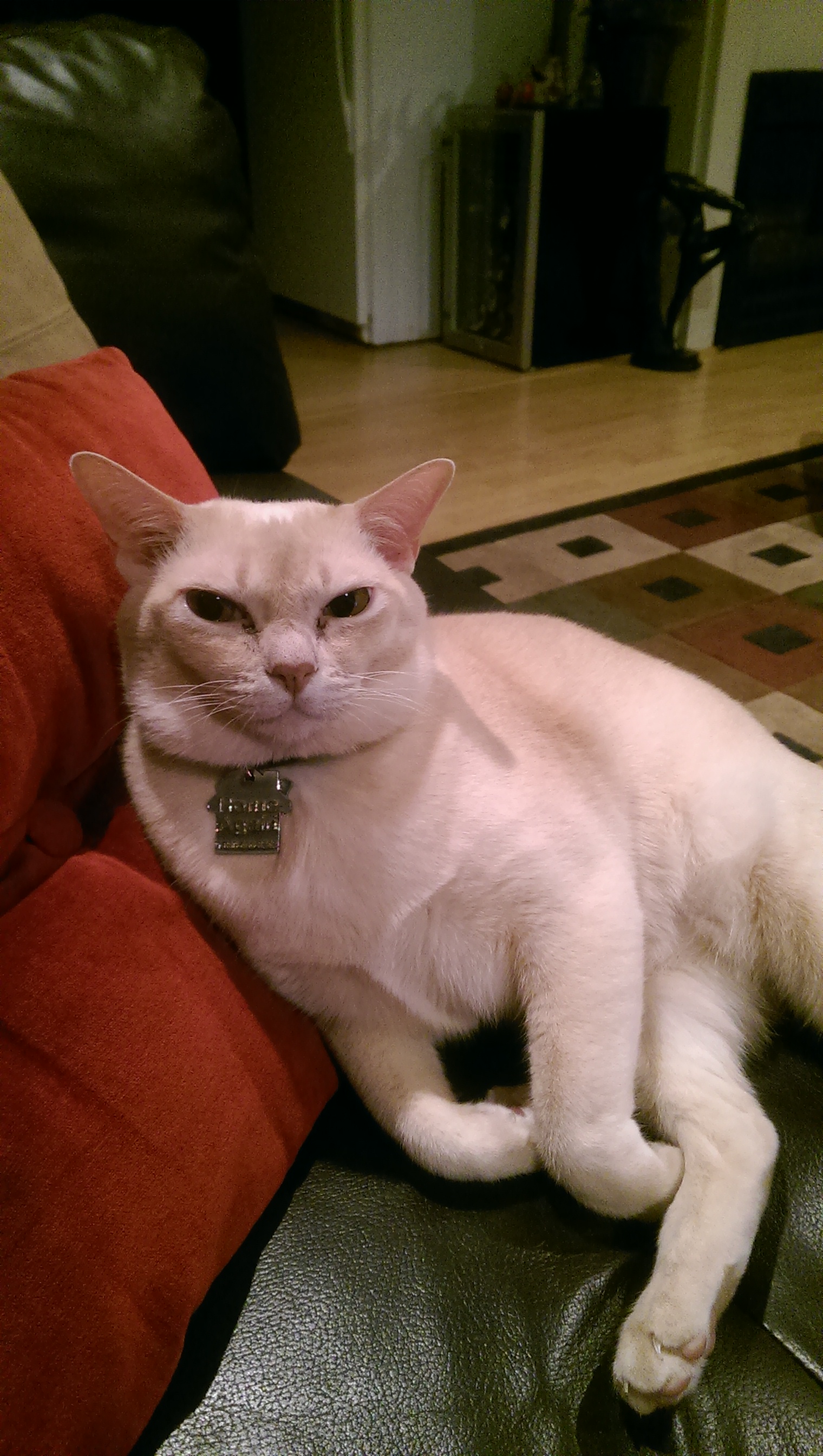 I have a very affectionate, playful cream European Burmese cat who is an absolute joy to live with. However, don’t be fooled by her adorable face and sweet demeanor. Kazu is quite mischievous and has a tendency to steal underwear and socks. It doesn’t matter if they are clean or dirty, or even if they are brand new. Kazu just has a strange fixation on those wardrobe items. I have watched her dig through the laundry basket to find a random sock, then trot all over the house with her little treasure. Here is a photo of a recent sock heist which ended at the food bowl: