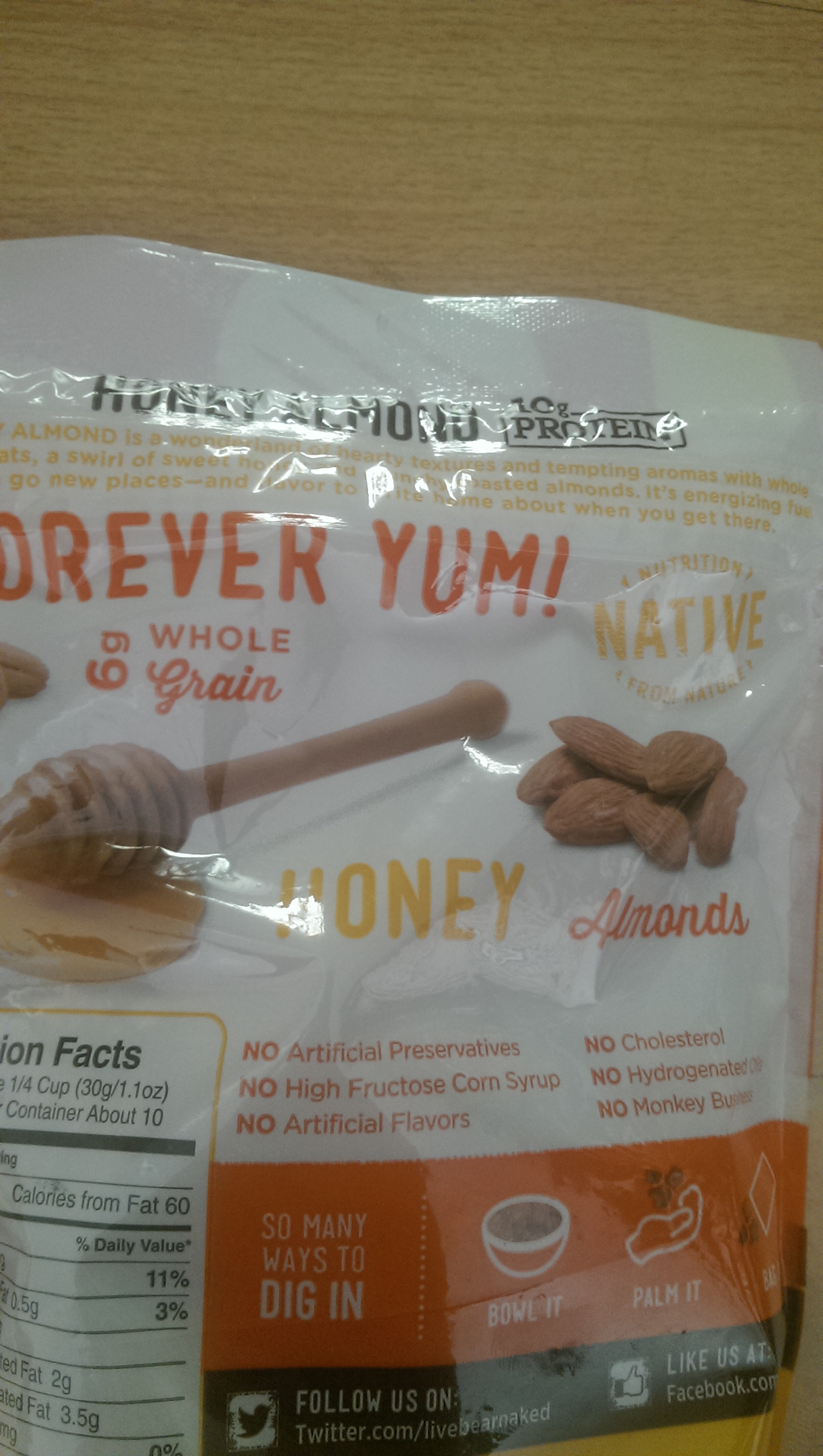 Here are the ingredients in Bear Naked 100% Natural Granola Honey Almond: