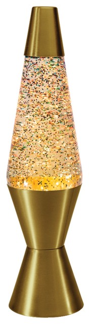Amazon is like a magic genie which can grant just about any wish to a shopper. Did you say you want a gold glitter lamp? Ta-da! Your wish is granted: https://www.amazon.com/14-5-Inch-Rainbow-Glitter-Clear-Liquid/dp/B015EEPKJW/ref=sr_1_1?ie=UTF8&qid=1505102175&sr=8-1&keywords=gold+glitter+lamp