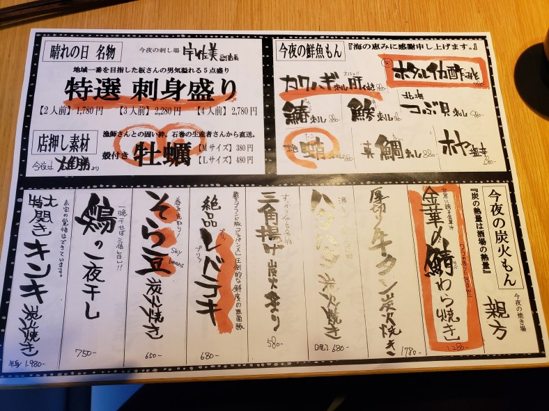 The first evening I was in Japan, I walked to a quaint little restaurant near the hotel I was staying at in in Ota-ku.  The proprietors were lovely, gracious, spoke a bit of English, and also served a tasty chirashi bowl which I happily devoured.  I was tempted to return to the same restaurant the following night, but I wanted to explore, and ended up in a very bizarre restaurant which featured the first nihongo-only menu.  The instant I walked in, the proprietors and guests all stared at me, making me very uneasy.  At that point though, it was late, I was hungry, and I needed to eat, so I put up with the icy reception.  One table in particular was quite loud, and one middle-aged man clad in manga covered pajama pants was making the most noise at that table.  He kept talking and cackling while taking long drags off his cigarette, creating clouds of off-putting fumes which wafted over to where I was sitting.  There was no way I would have a relaxing evening at this place!