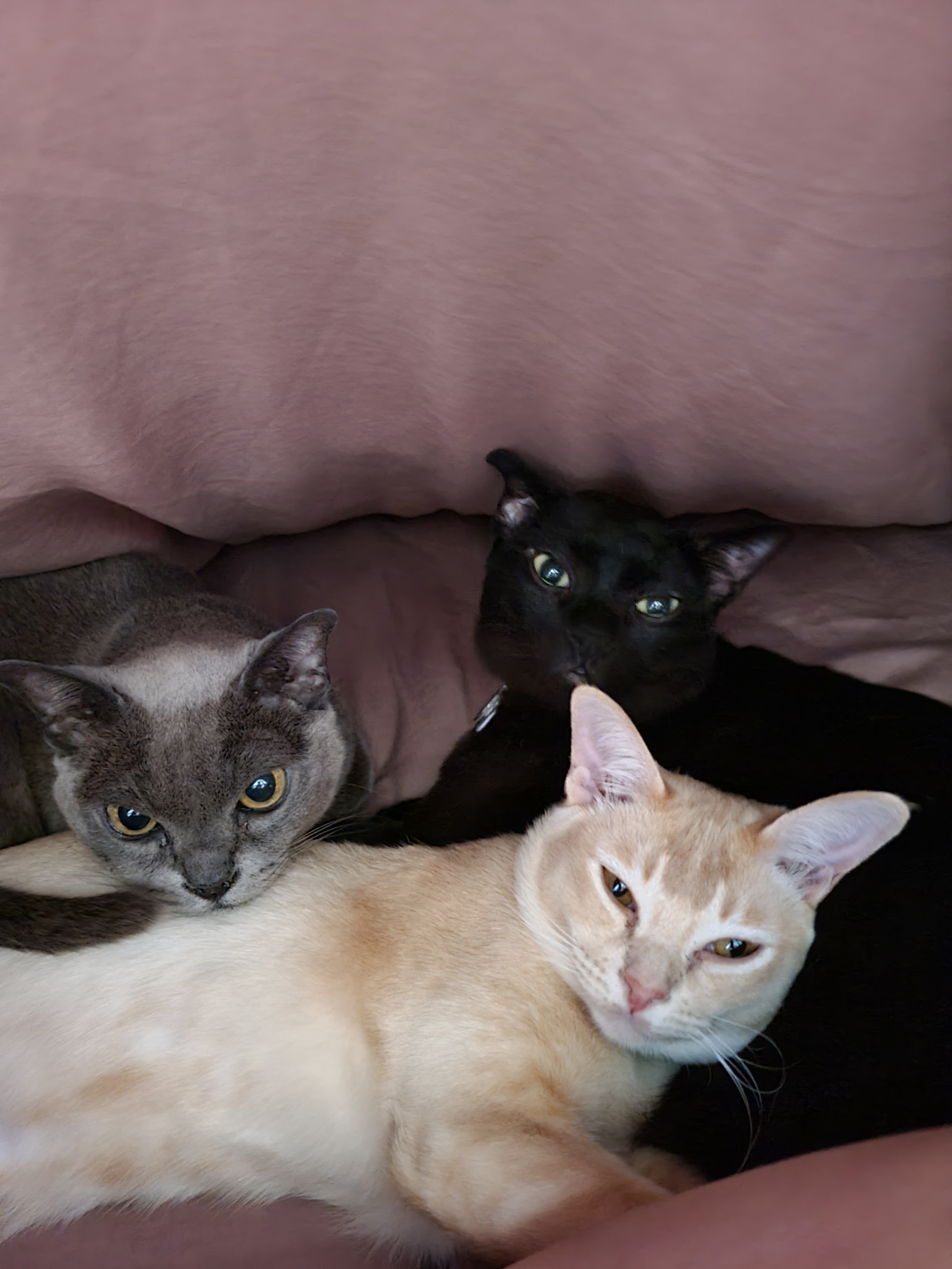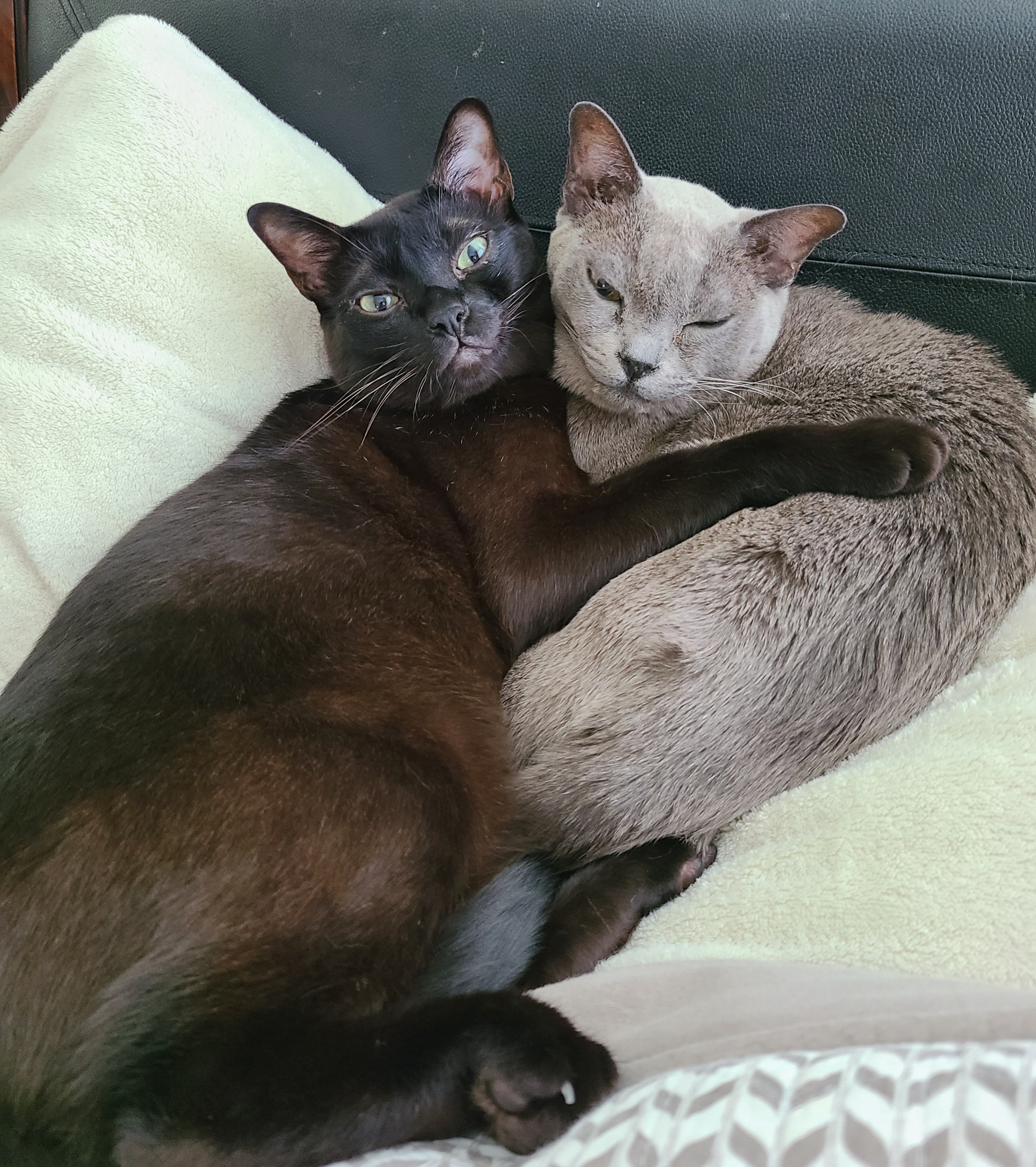 As a matter of fact, I flew to Philadelphia in June of 2023 to scoop up a beautiful cream European Burmese female, whom I named Sumi. Sumi very quickly adopted the dual roles of official greeter and main bed buddy, both of which my dear, departed Kazu performed like a champ. It was absolutely worth it for me to fly across the country to get another blondie, because Sumi truly has become a snuggly sweetheart and a welcome addition to the family.