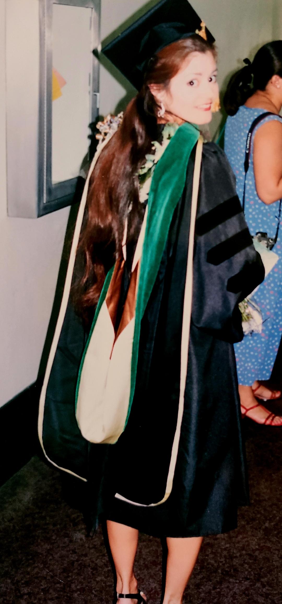 The most meaningful aspect of donning the hood for me at my medical school graduation ceremony was that I asked my mom to put it on me when I walked onto the stage to receive my diploma. My mother always believed in me, encouraged me, and was beaming with pride on the day that I graduated from medical school. I couldn’t imagine anyone else placing the esteemed hood across my shoulders.