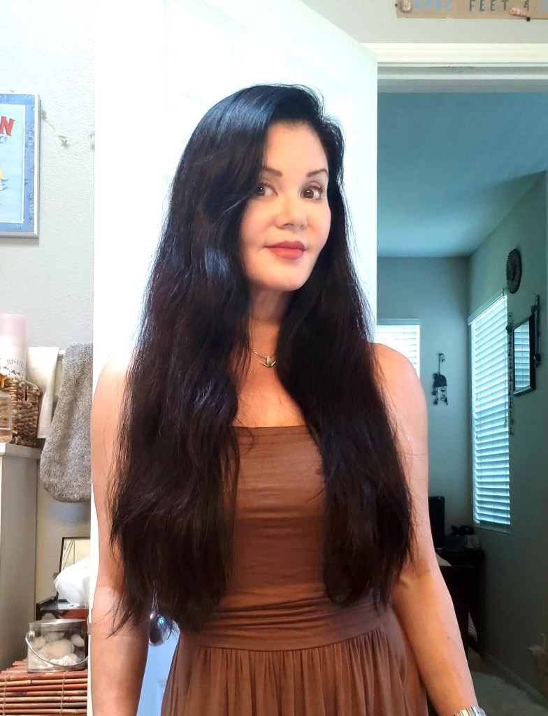 My hair was always straight throughout childhood and adulthood, to the point where it often fought any type of curl or wave I tried to create. Then menopause hit, and my hair mutated into a super wavy, frizzy, unmanageable mess. To give you an idea of how wavy my hair became after the “change”, let’s just say that as my hair air dries after I wash it, it looks like I had put my hair into two pigtail braids and left them that way overnight, then unraveled them to release intense waves. On the rare occasion when I am rushing around and unable to run the flat iron through my hair once it has completely air dried, a few friends have witnessed how wavy my tresses have become. Despite the fact that those friends have remarked that they think it looks pretty, I cringe when I realize that someone has noticed the change in my hair texture.