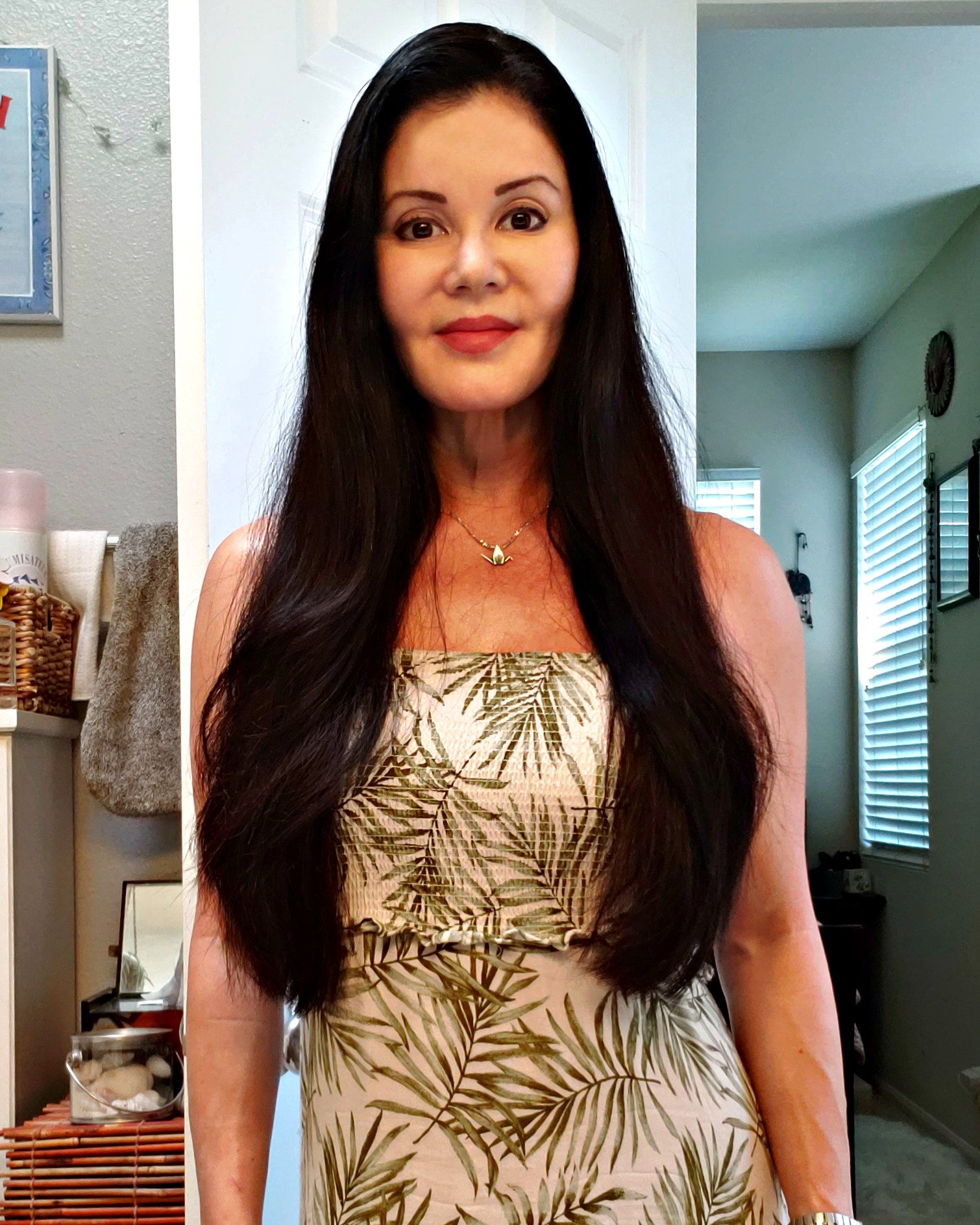 About three days after I applied Brazilian Bottox Expert, I washed and conditioned my hair with Amazonliss Anti-Frizz Shampoo and Conditioner. As my hair dried, I noticed that the wave in my hair had relaxed somewhat, which surprised and delighted me since the product is not considered a straightener or relaxer. Right before my hair was completely dry, I ran a hair dryer through it, but it took no time to get it to dry, and my hair looked smooth and relatively frizz-free, with no mushrooming out (no more Roseanne Roseannadanna!). I could actually tolerate the amount of curl in my hair, but I still ran the flat iron through it.