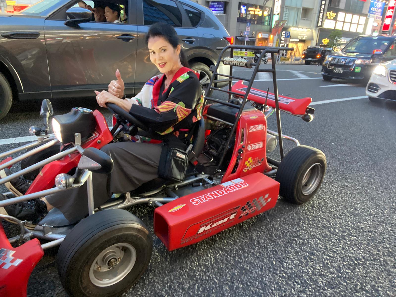 Perhaps the biggest highlight of our stay in Tokyo in particular was the two-hour Street Kart Racing event we took part in one evening in the Akihabara district of Tokyo. We donned more sedate haori jackets in preparation for our outing, while the other two participants decided to go full bore with Hopeful Heart Care Bear and Stitch onesies, both of which were hilarious. After a brief lesson on how to operate the karts, we were on our way, a single-line procession of gas-powered street karts on an adventure in Tokyo!
