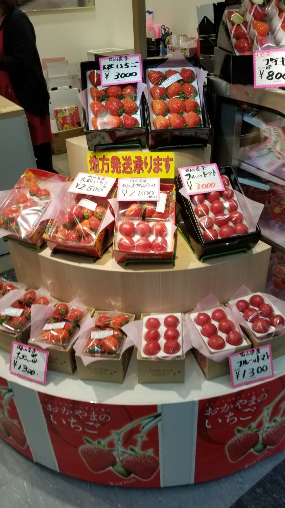 One thing I noticed immediately was that the sashimi I ordered in Japan was not only far superior to most of the sashimi I have had in the states, it was also much cheaper.  What would cost me about $25 in the U.S. ran only $11 to $13, and the fish was incredibly fresh and flavorful.  The food items which were outrageously overpriced were imported fruits like baby watermelon ($15), strawberries ($30 for 6 jumbo fruits), tomatoes (also $30 for 6 large fruits), and I wasn’t interested in those items anyway.