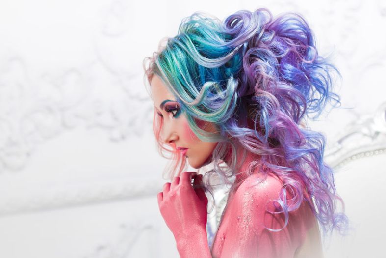 Mermaid hair is specifically defined as a mixture of marine shades blended into bleached and toned hair, while unicorn hair colors are more reminiscent of cotton candy and “girly” pastel shades. However, this by no means is any indication that this is only for girls or women. The wildly colored hair movement is found among people of different genders and ages. I’ve seen men with lilac and aqua hair, and women in their 70’s with pink hair.