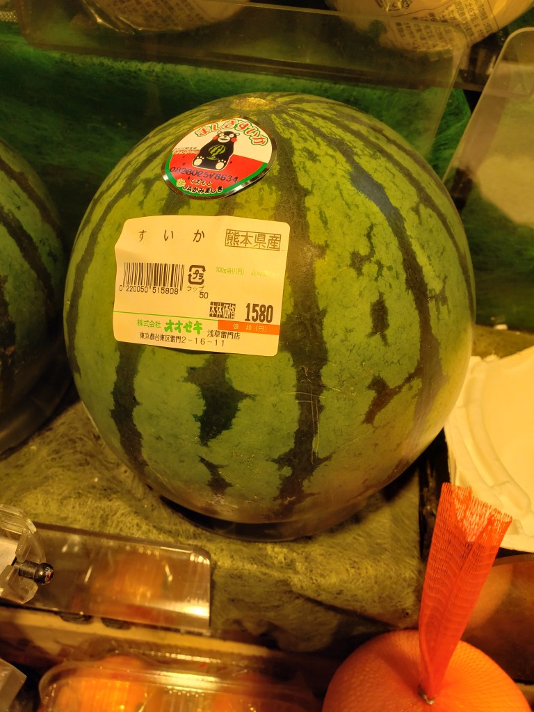 I didn’t get a chance to visit a grocery store while abroad until 2020, when I traveled to Japan, but I managed to visit numerous grocery stores all over the country, so I was able to observe differences between prefectures. I also rather quickly noticed that bottles of sake were much cheaper than what I have seen in the States, while fresh produce was almost prohibitively expensive. As an example, I saw 4000 ml bottles of sake (that’s more than a gallon!) for 2199 yen, which is about $16.50 USD now. I also saw a baby watermelon at a market in Sendai which cost almost $12 USD (1580 Yen). Here are some fun images from my mini field trip to Ozeki Super Market.